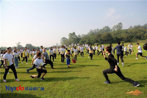 接下来,由专业健身教练带领大家完成赛前热身,大家都活力满满,蓄势待发。