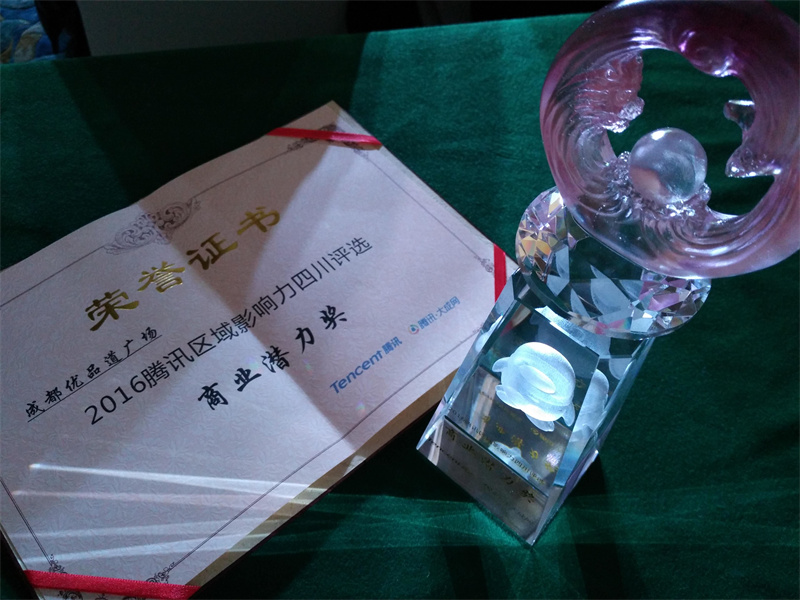 12月27日,2016腾讯区域影响力四川峰会在成都香格里拉大酒店举行。本次峰会以“十年同行,聚势共赢”为主题,除了庆贺腾讯区域业务部十年发展所获得的累累硕果,还从“革新的力量、内容的力量、整合的力量、智慧的力量”四个维度出发,颁发了政务影响力奖、十大正能量企鹅号、区域营销特别奖、城市影响力品牌房企等多个大奖。其中,优品道广场崭露头角,获得了“商业潜力奖”。